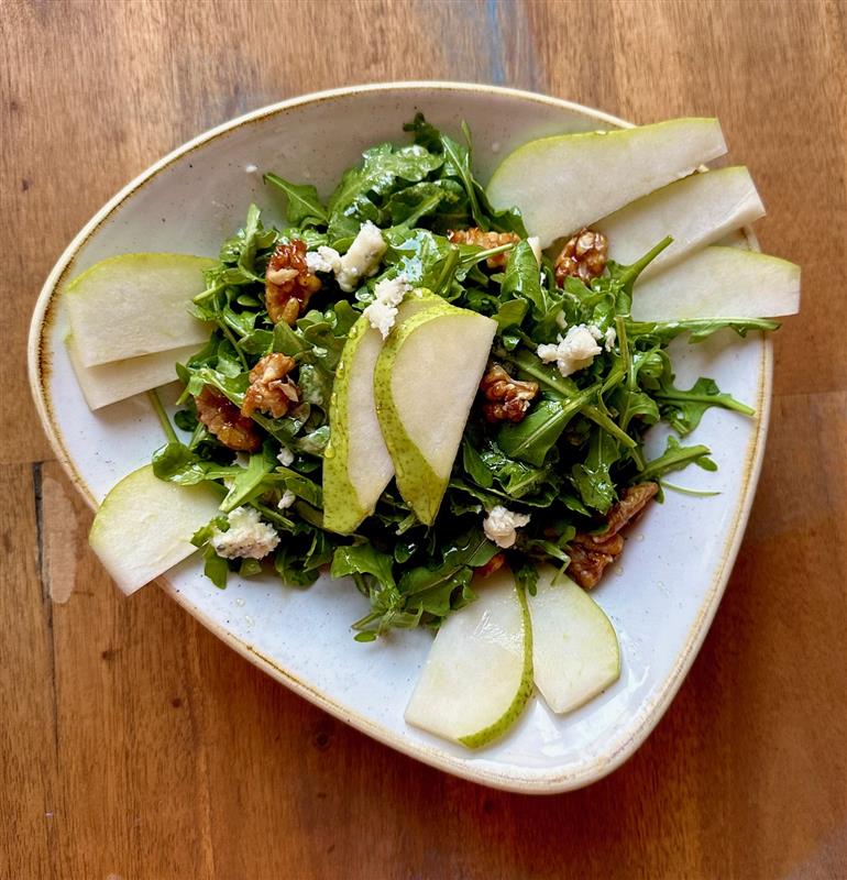 Vegan Pear, Walnut and Arugula Salad$25Delicious pear over arugula with caramelised walnuts
