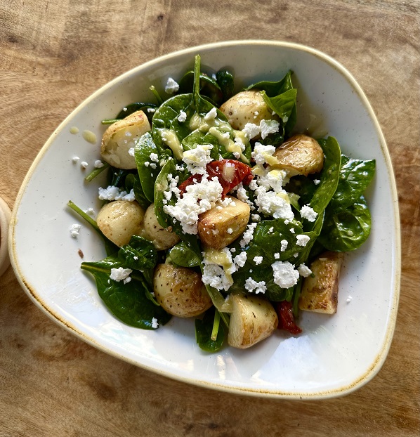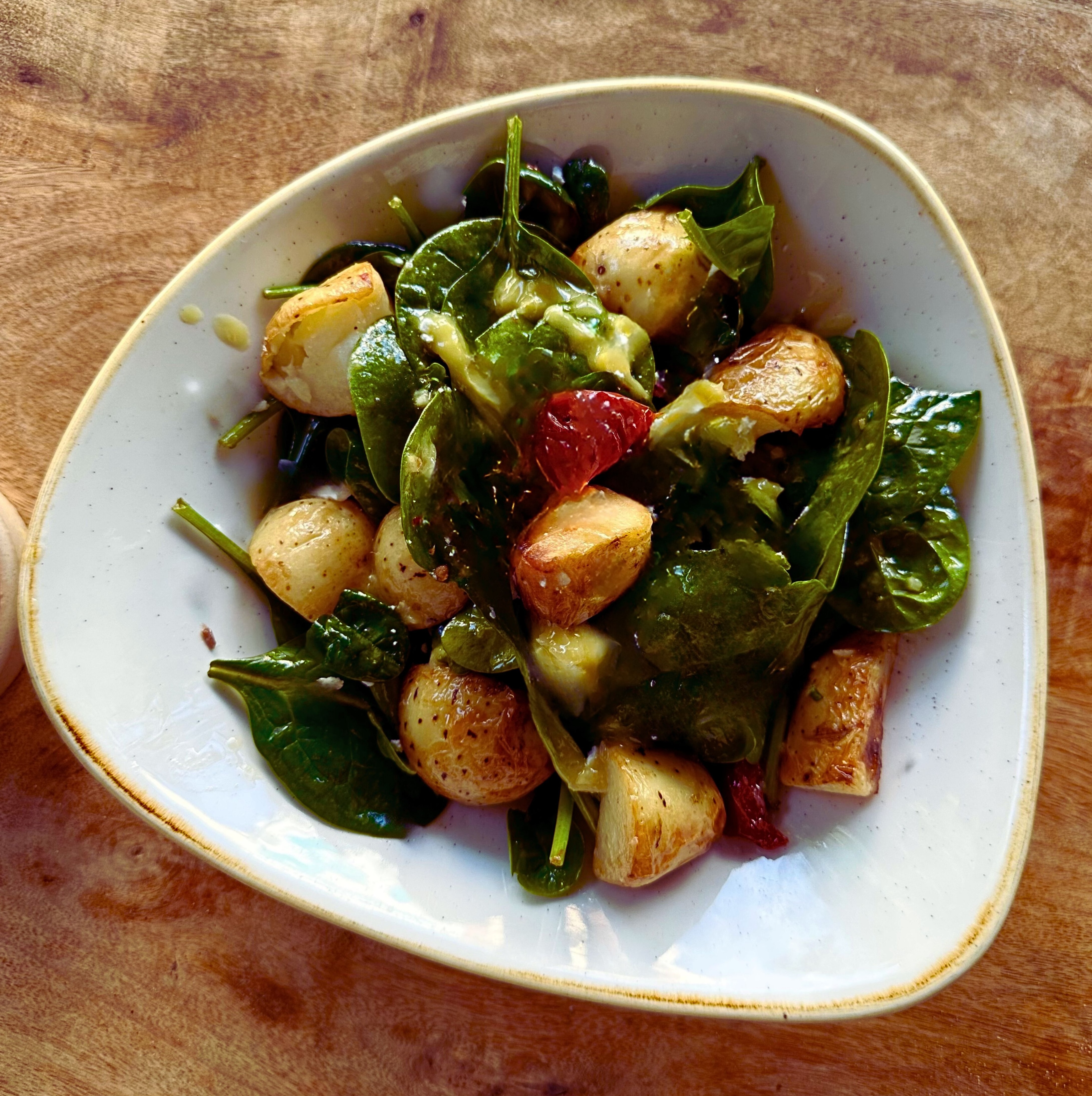 Vegan Spinach Salad$24Baby spinach, twice cooked roasted potatoes, semi-dried tomatoes, toasted pine nuts, preserved lemon dressing
